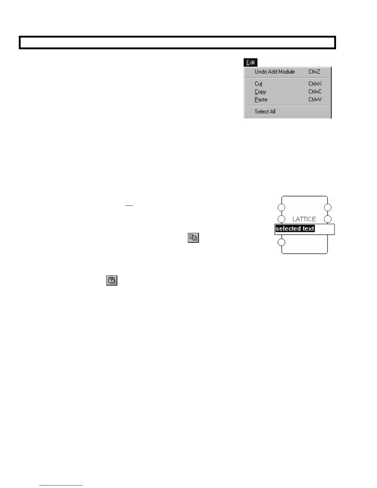 • The Copy command copies (does not delete) the currently selected text, module, or