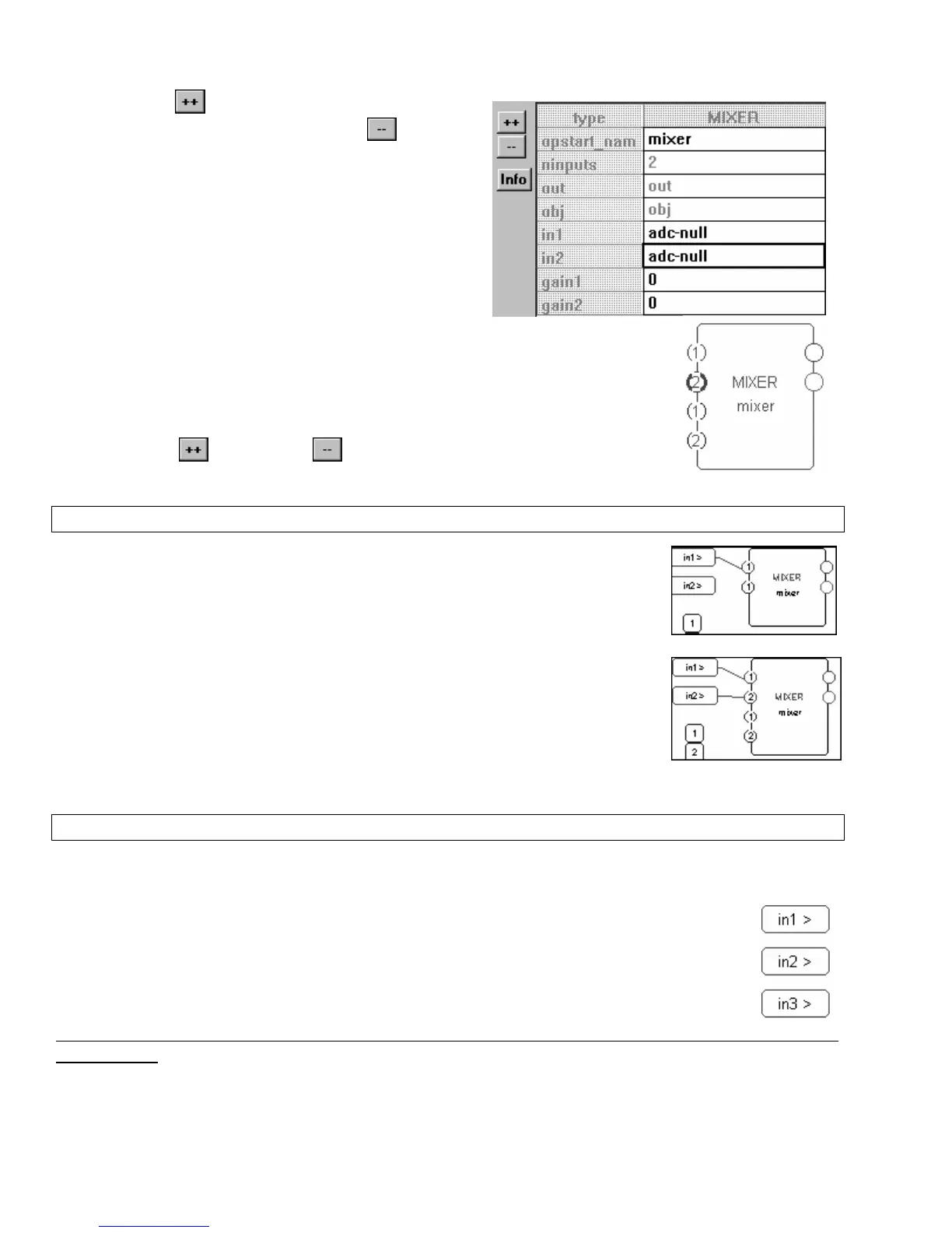 this simple example, we’ll mix the DSP inputs 1 and 2. First connect DSP input