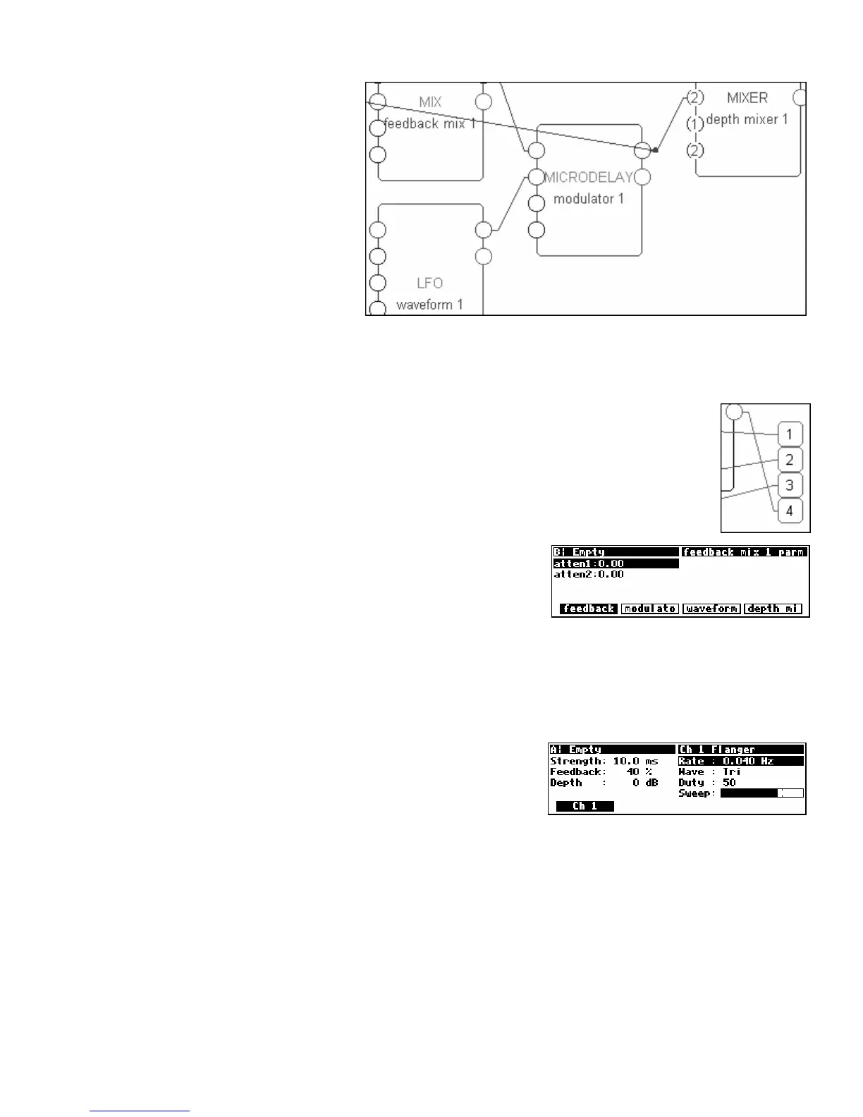 modulation is more than sufficient for a flanger. Also, set its delayamt control input to “0.1." Doing so will