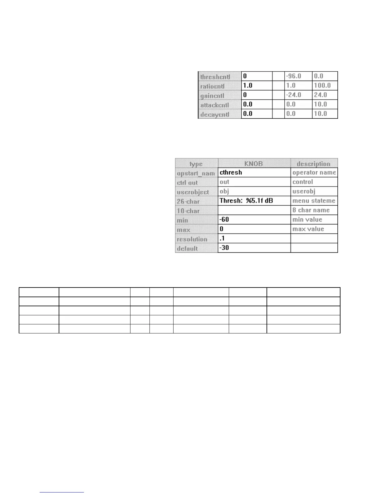 name menu statement min max resolution default