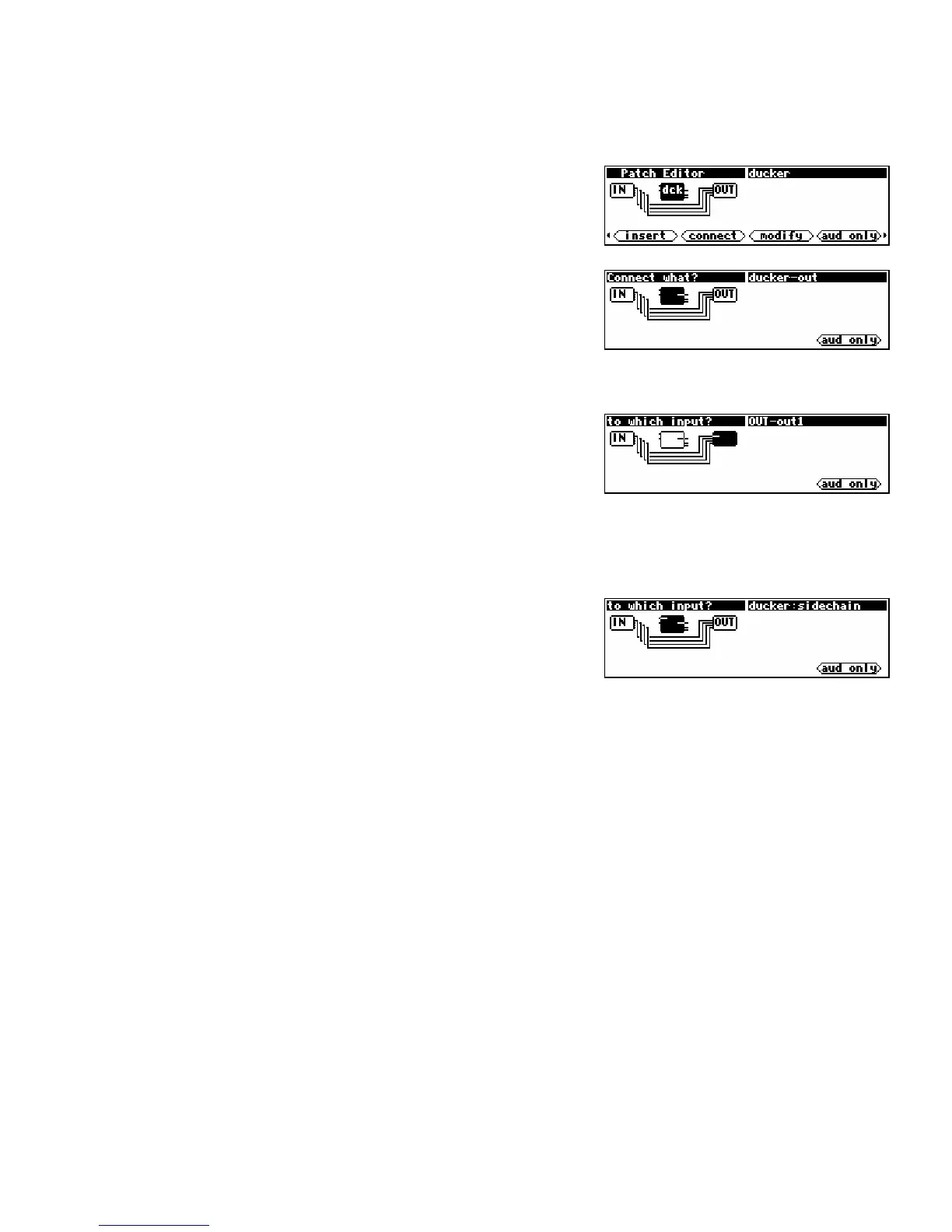 RIGHT or LEFT CURSOR key or by turning the KNOB. Right now we want to connect the ducker’s