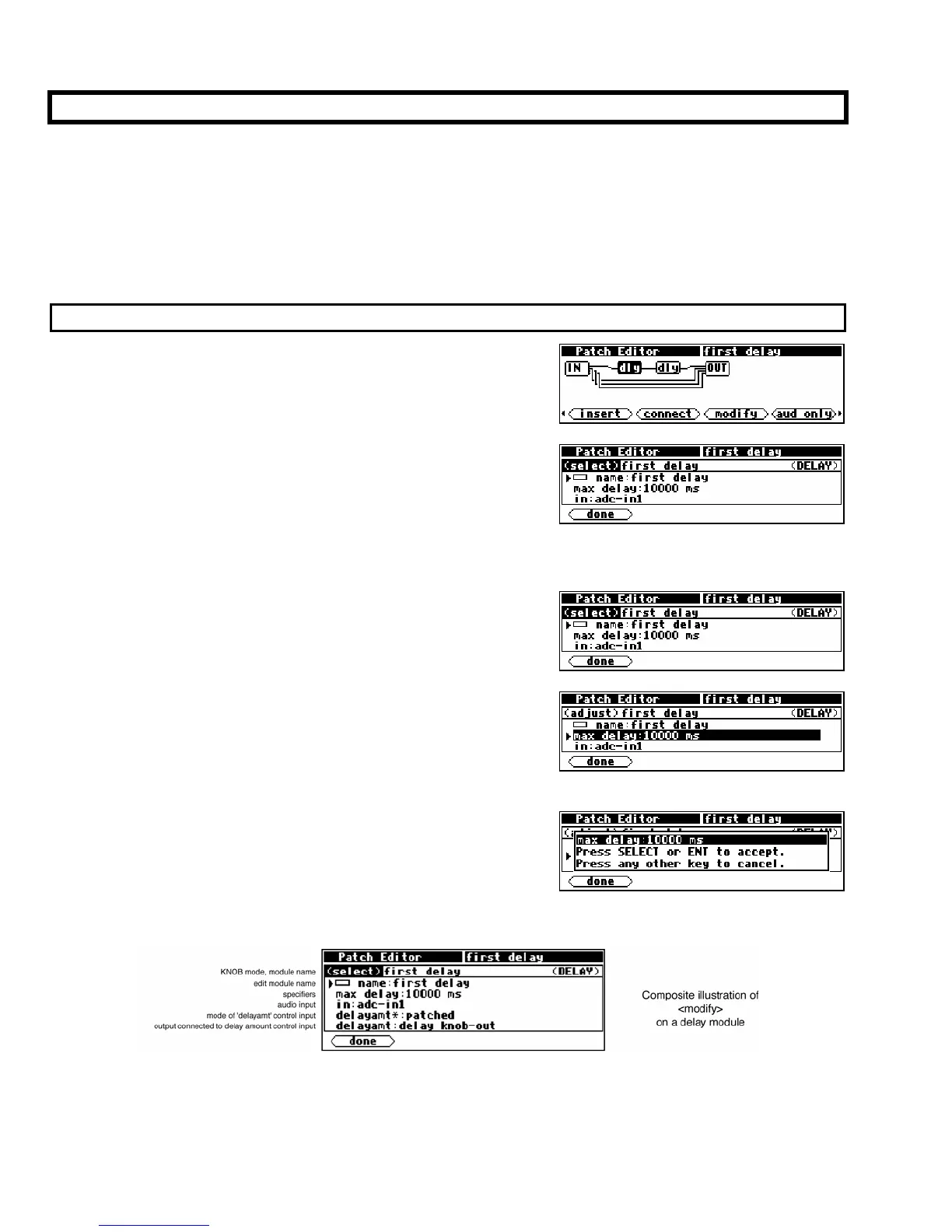 To use the <modify> SOFT KEY in the Patch Editor display,