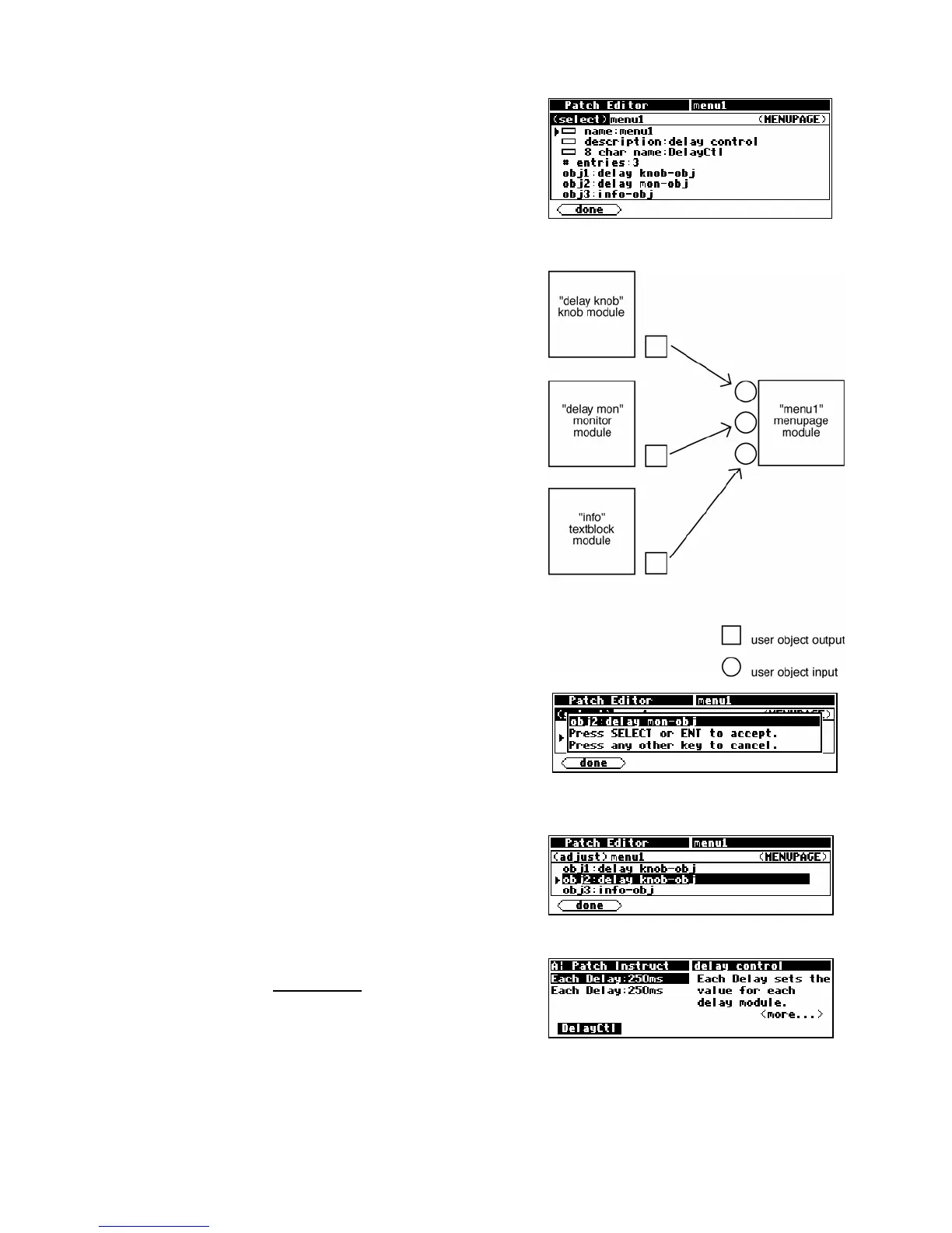 adc-nullobj, delay knob-obj, scalemult-obj, delay mon-obj, menu1-