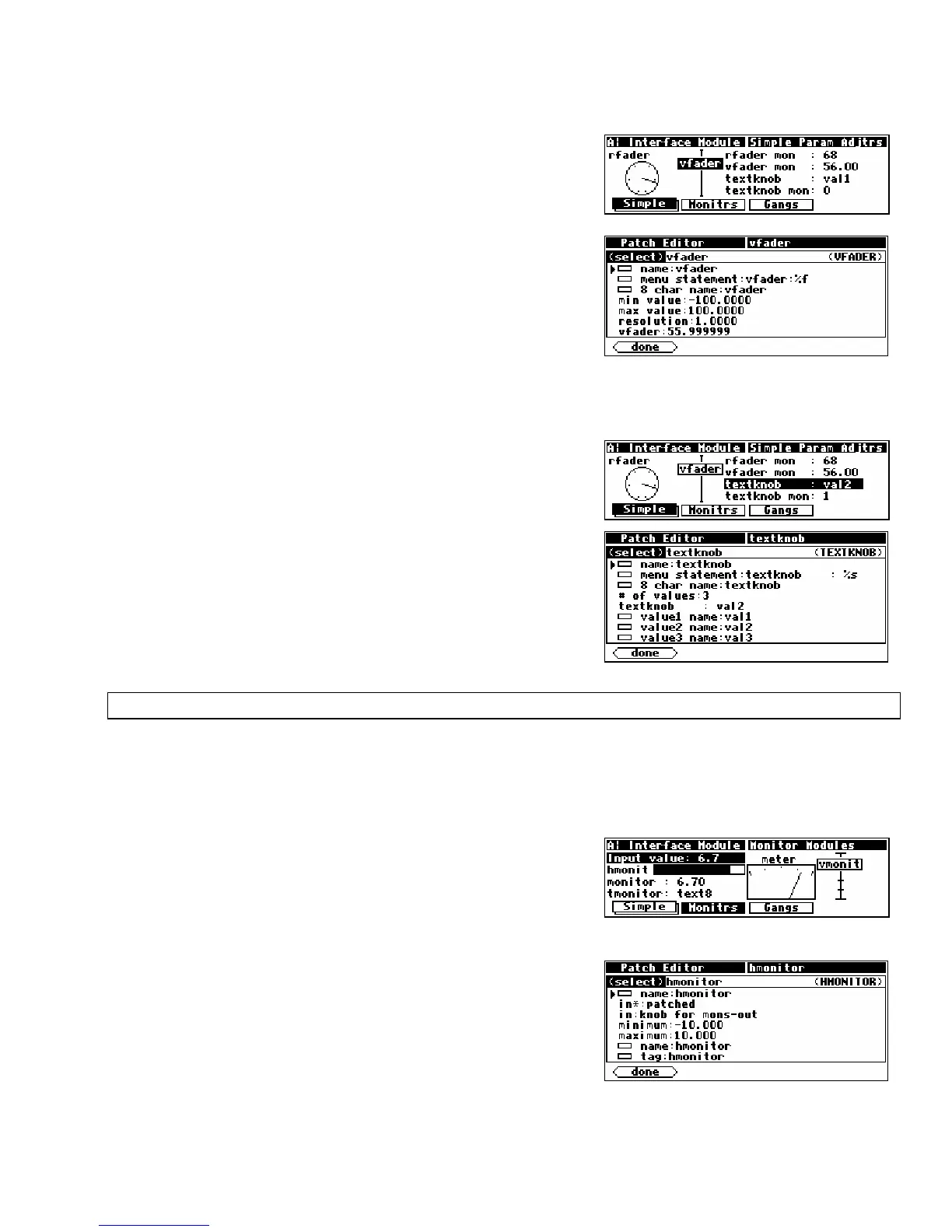 parameters in PARAMETER area menu pages, control signal monitor modules monitor the value of