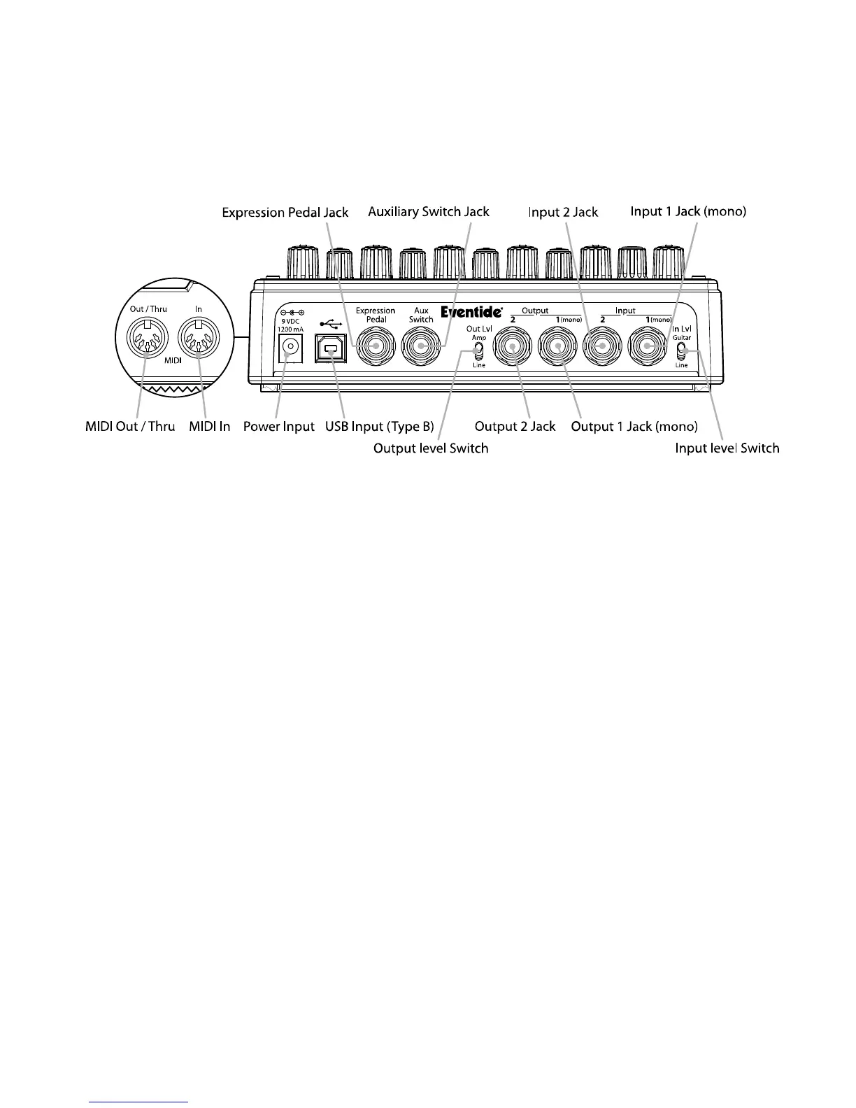levels. Audio Inputs and Outputs accept standard mono (unbalanced) ¼” phone plugs.