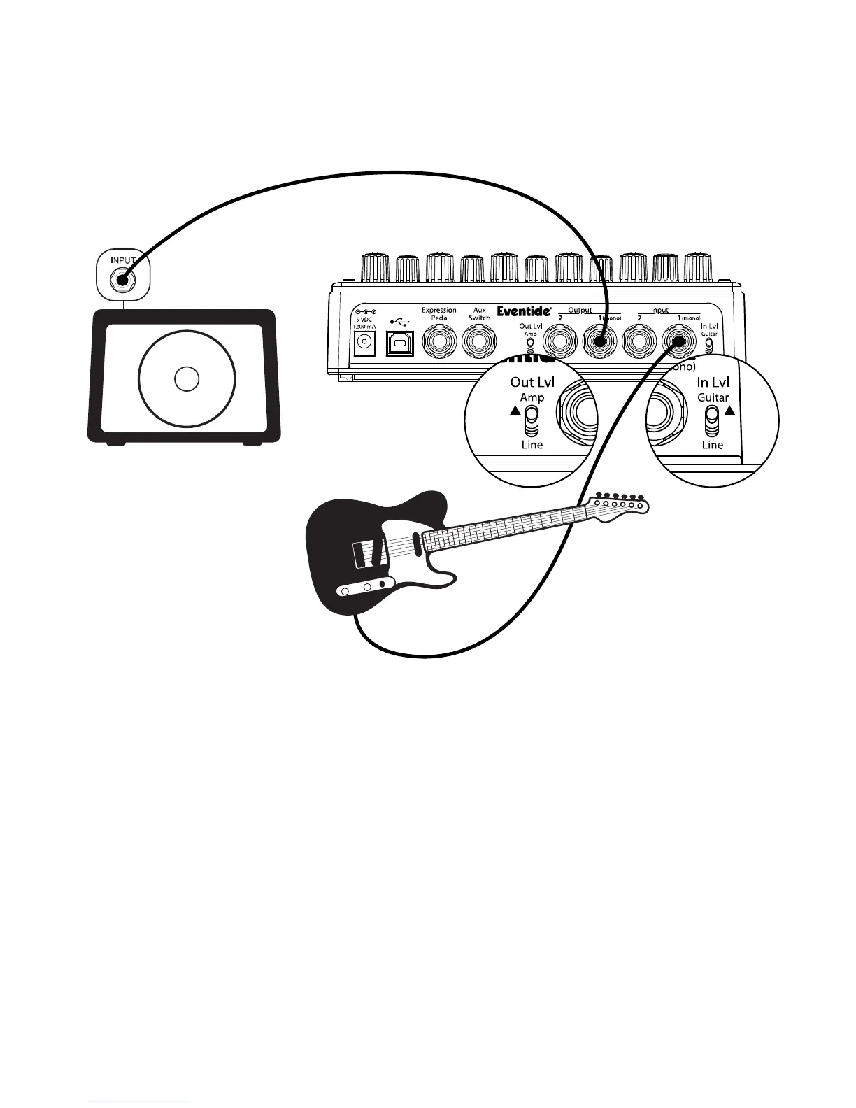 1 and a cable from ModFactor Output 1 to your amp. Input and Output Level switches (In Lvl