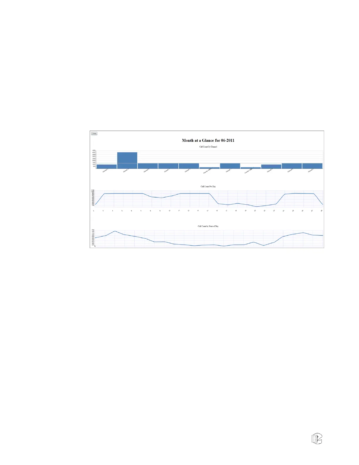 The Report will contain several graphs of call activity during the month on the