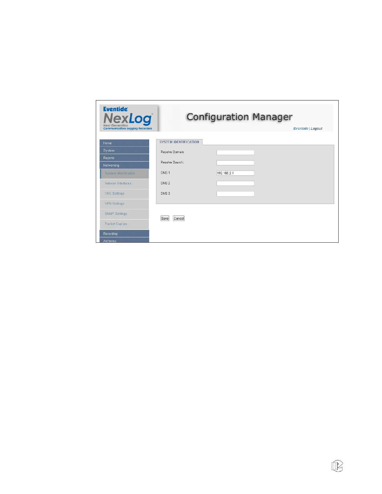 This page also provides space to optionally configure to DNS (Domain Name