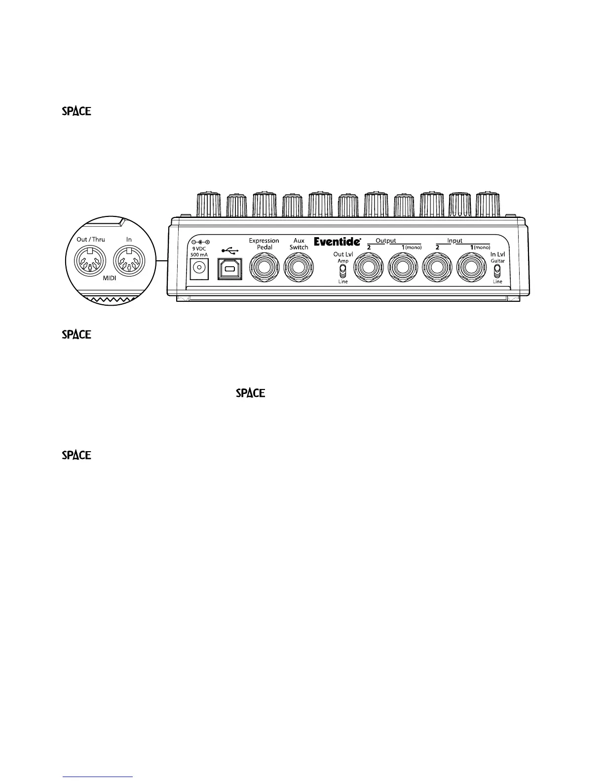 levels. Audio Inputs and Outputs accept standard mono (unbalanced) ¼” phone plugs.