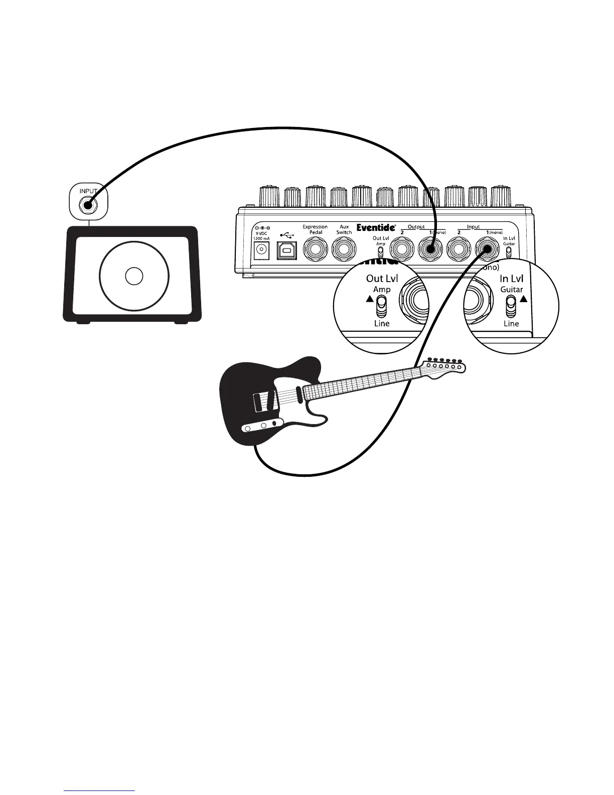 1 and a cable from TimeFactor Output 1 to your amp. Input and Output Level switches (In Lvl
