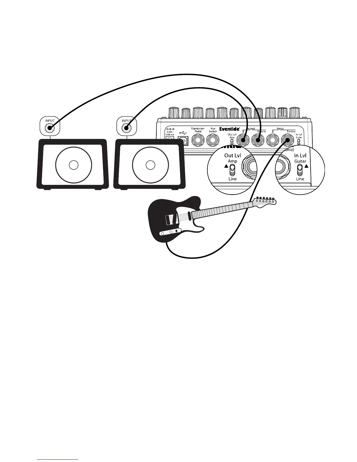 (In Lvl) should be set to GUITAR and Output Level switch (Out Lvl) set to AMP.
