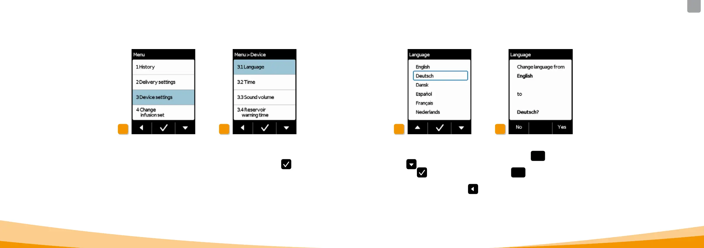 Ever Pharma D-mine Pump - Viewing or Changing the Device Settings; Setting the Language
