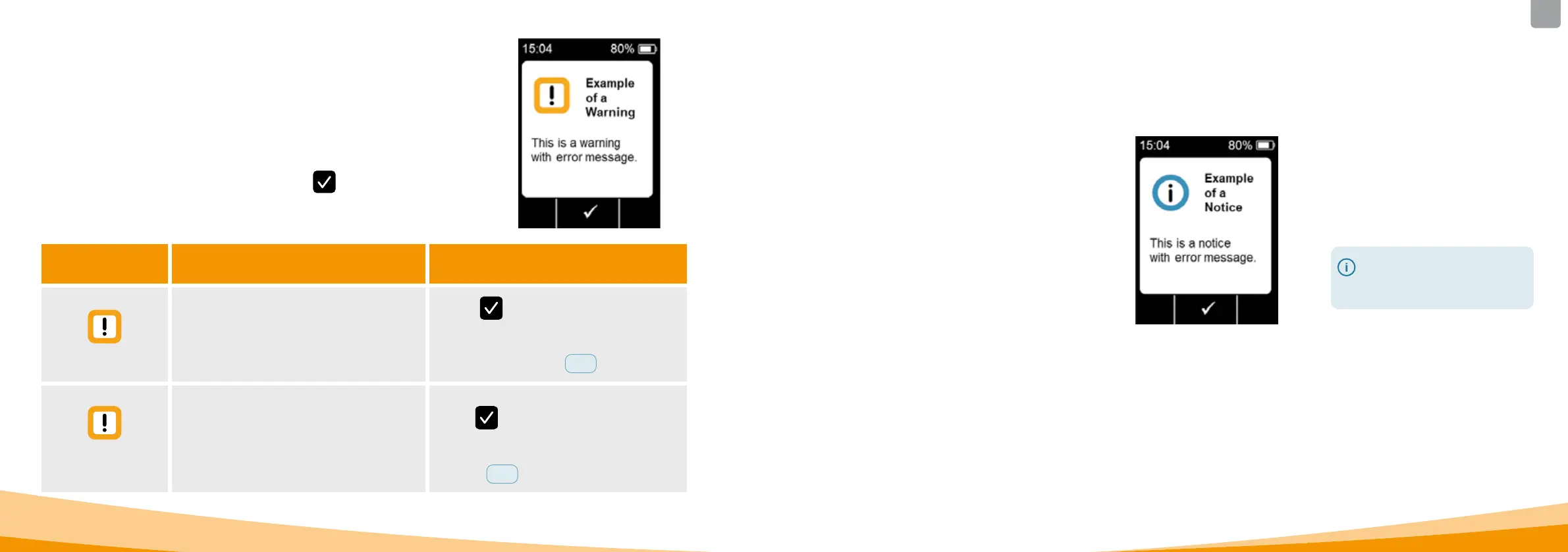 an acoustic signal to notify the user of the message. The warning will remain