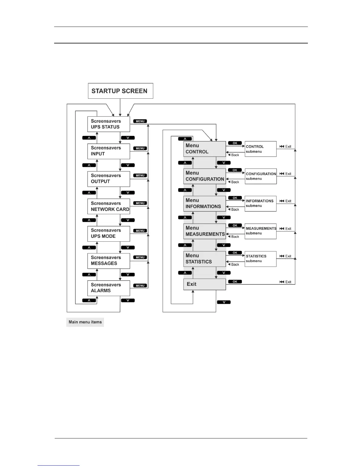 The menu structure of SINLINE RT / SINLINE RT XL UPS units is show in Fig. 7. All