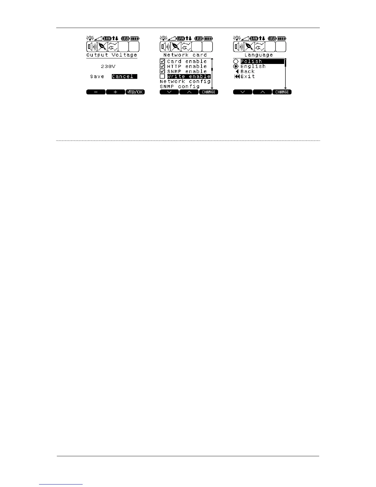 – configuration of the UPS unit's output voltage bottom