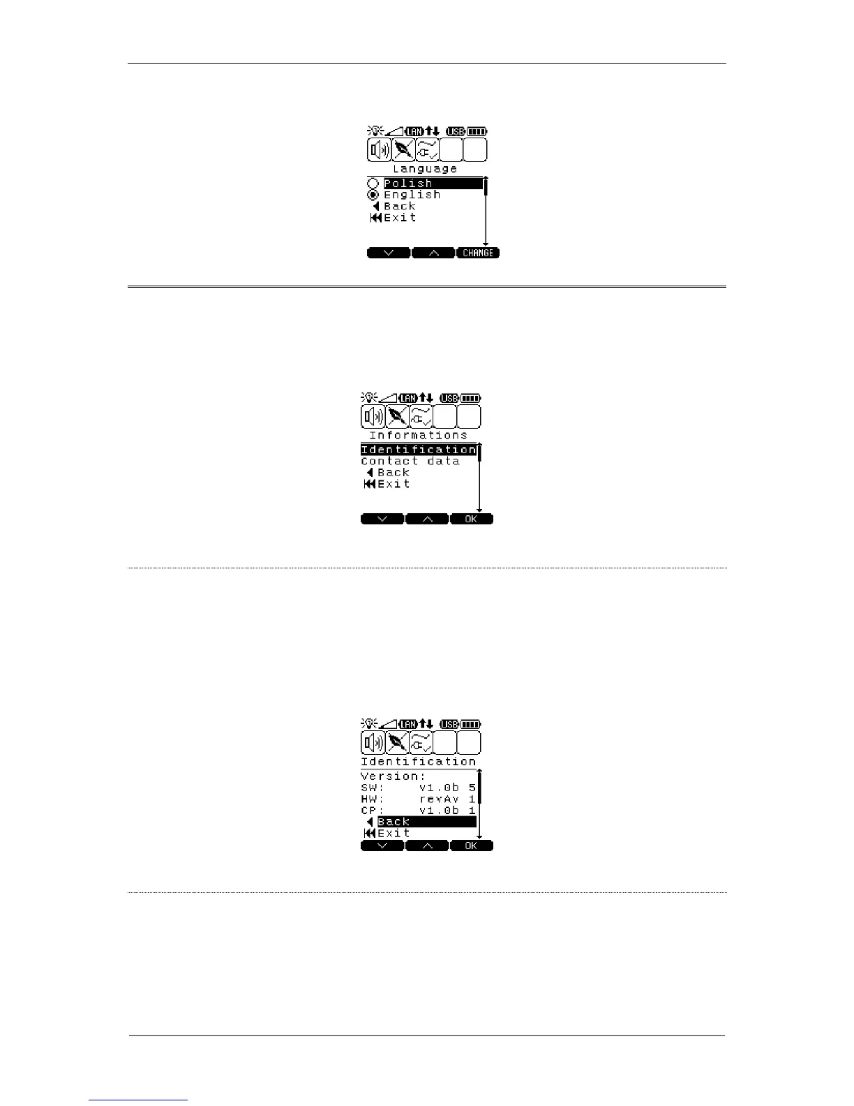 INFORMATIONS submenu
