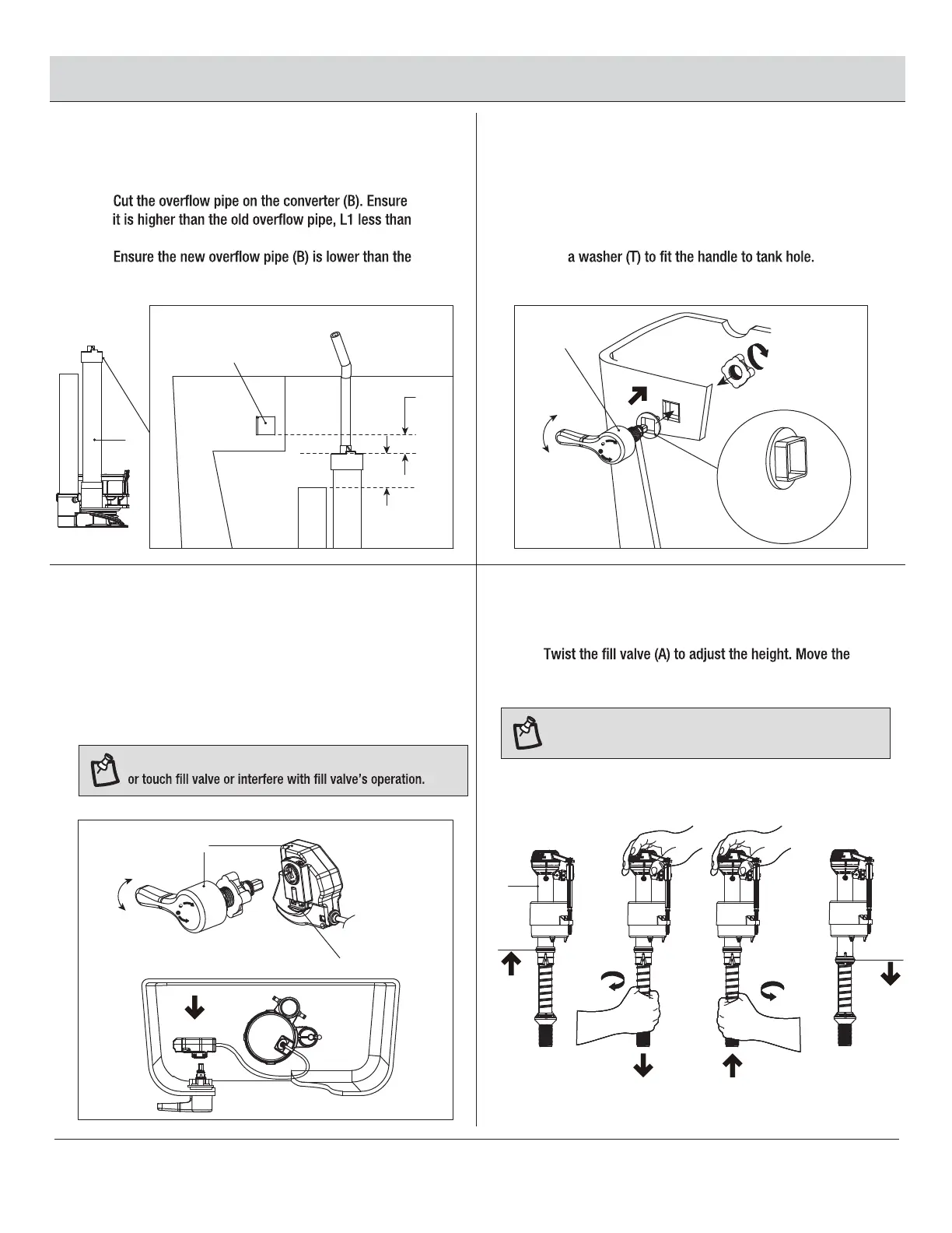 CUT NEW OVERFLOW PIPE POSITION THE HANDLE