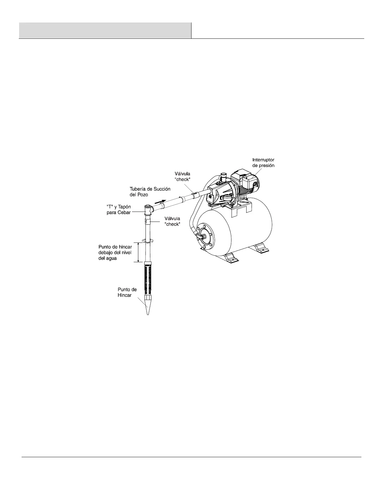 succionar aire, la bomba no podría sacar agua del pozo. Si un punto de pozo no proporciona suficiente agua, considere la