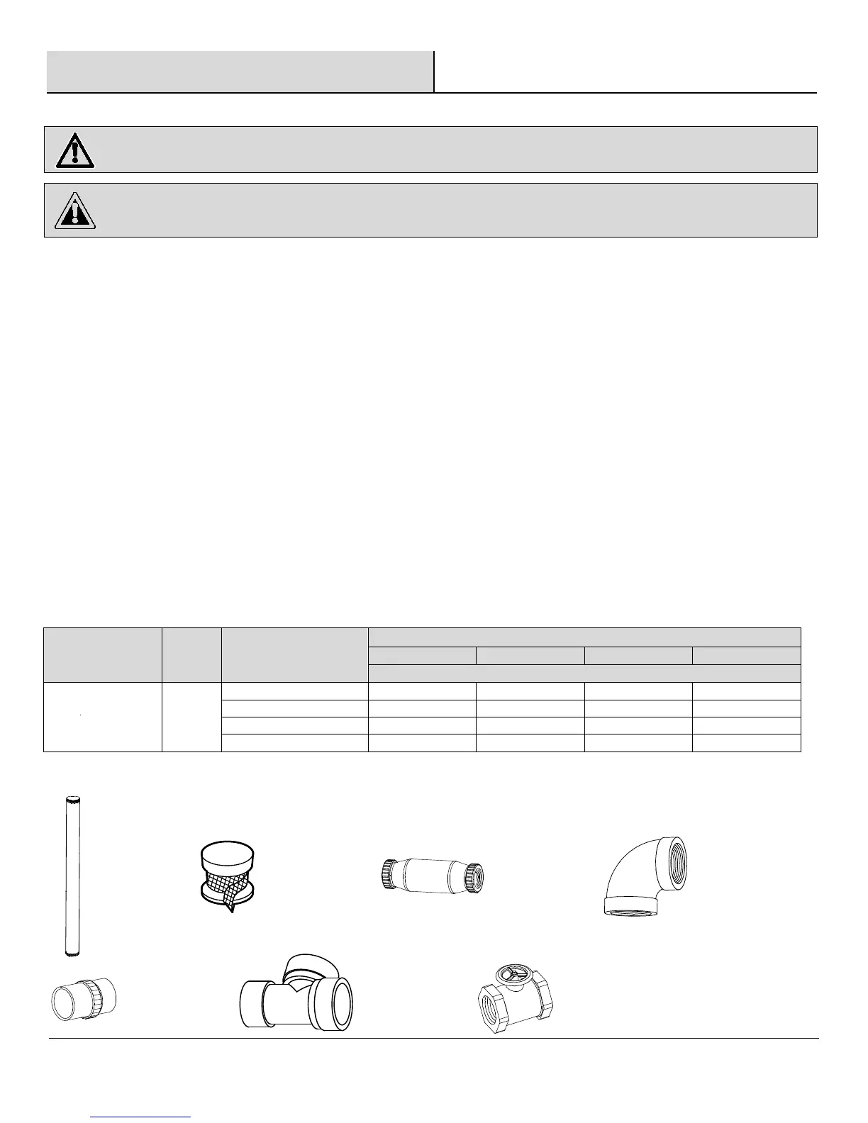 □ Las válvulas de pie o de retención (no incluidas) se deben instalar en la tubería de succión para optimizar la succión de la bomba.