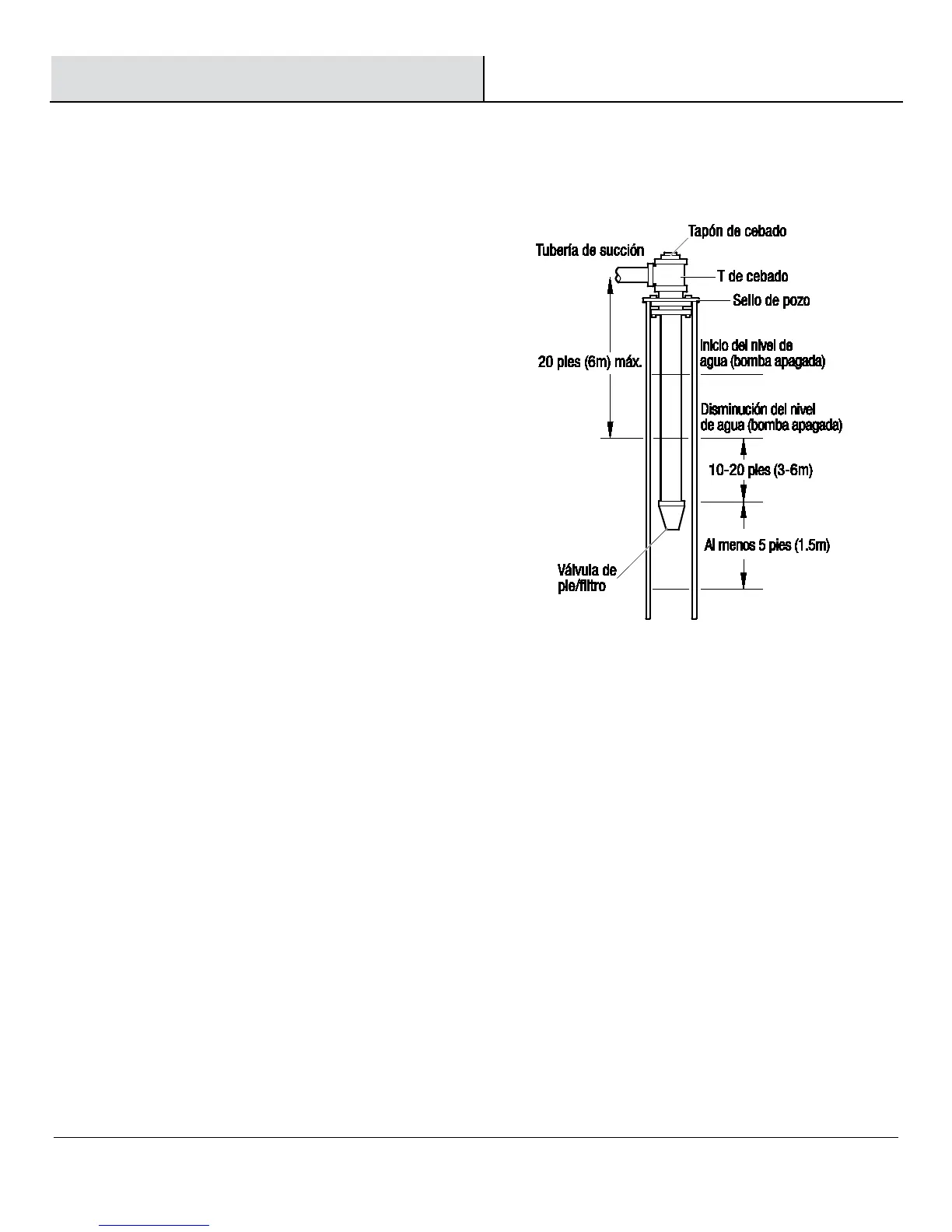 válvula de pie de 10 a 20 pies (3 a 6 m) abajo de nivel más