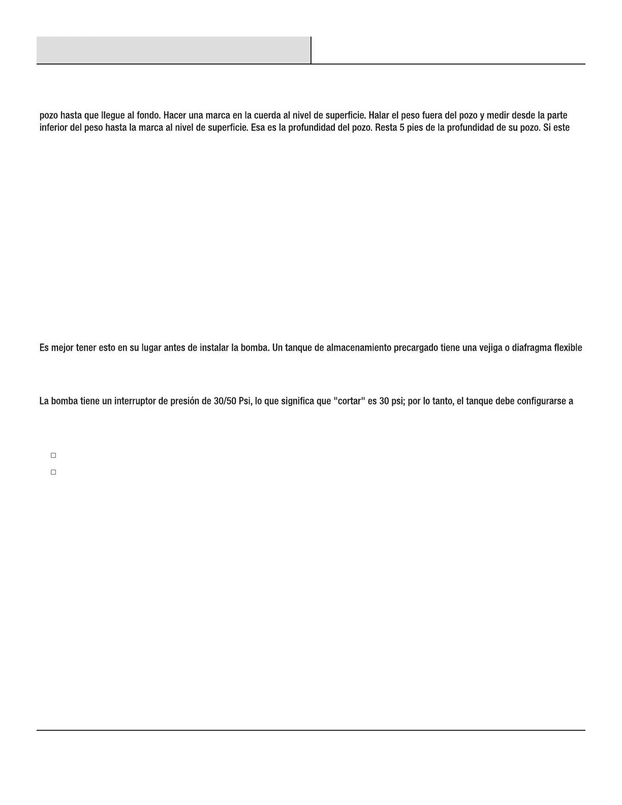 Para pozos de 25 pies (7.62 m) o menos de profundidad, se deben adaptar las instalaciones de pozos poco profundos.