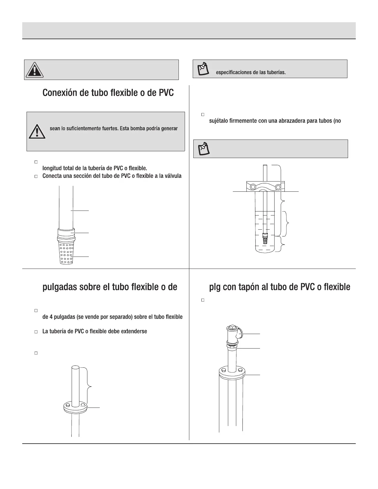 tuberías son débiles, la tubería y la válvula de pie podrían