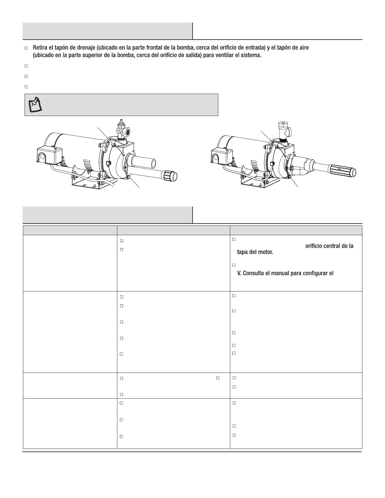 cebado. Llena las tuberías de la carcasa con agua.