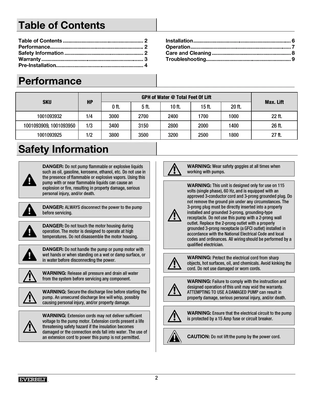 Everbilt SBA050BC - Performance and Safety Guidelines; Essential Safety Information; Safety Information and Warranty Policy; Safety Precautions and Guidelines