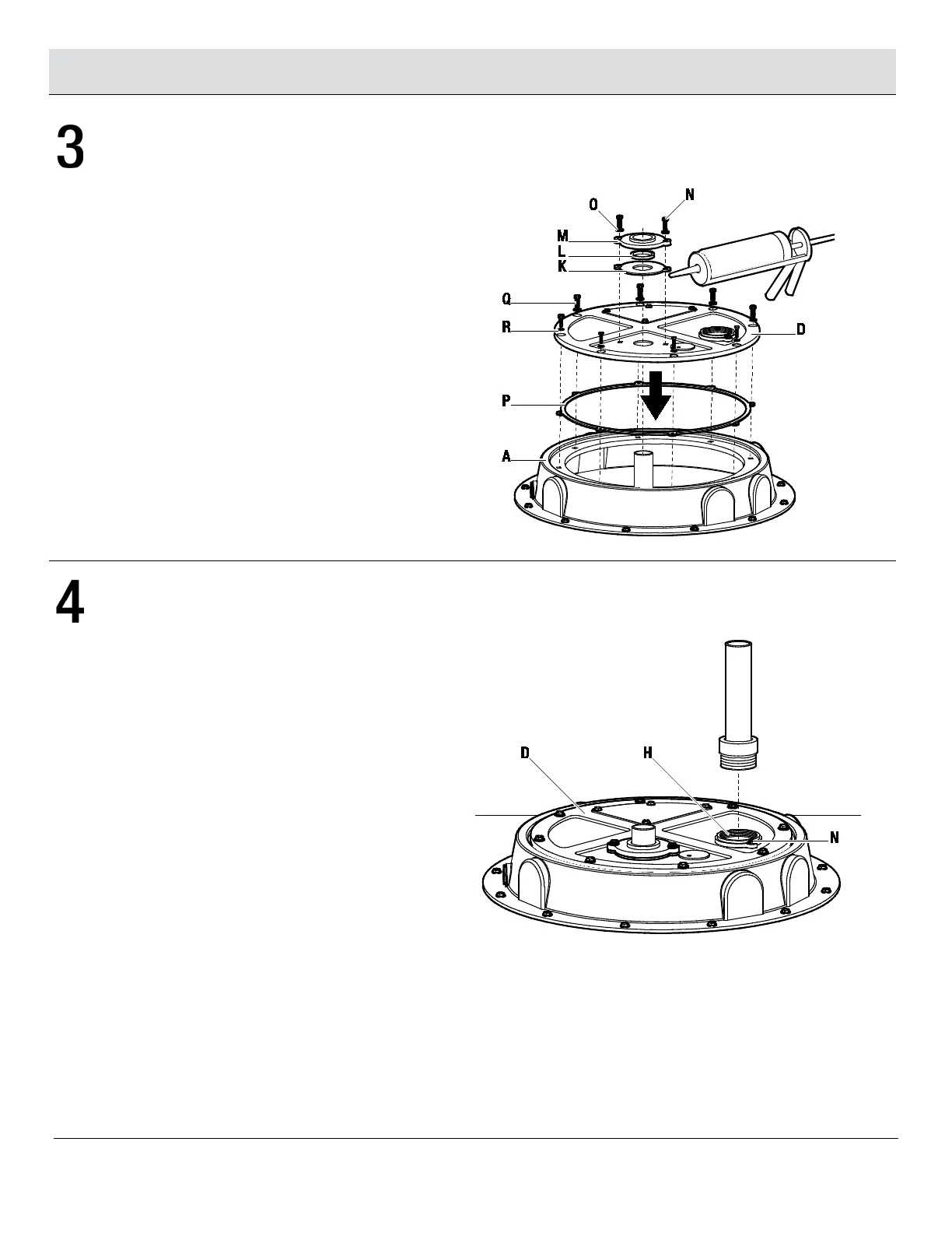 □ Pre-install the lid seal (P) onto the lid bolts (Q and R)