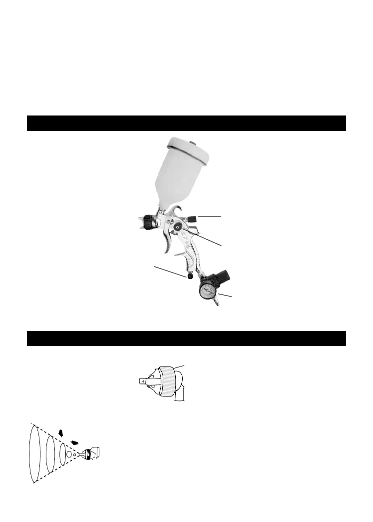 • Réglerlavisdecontrôleduliquideetlavisdelargeurdepulvérisationpourobtenirlemotifdésiréavantdel’utilisersurlapièce.