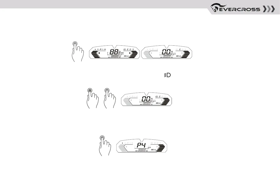 • Power ON/OFF: Long press the button for 3 seconds, all icons are lighting, showing speed & batter