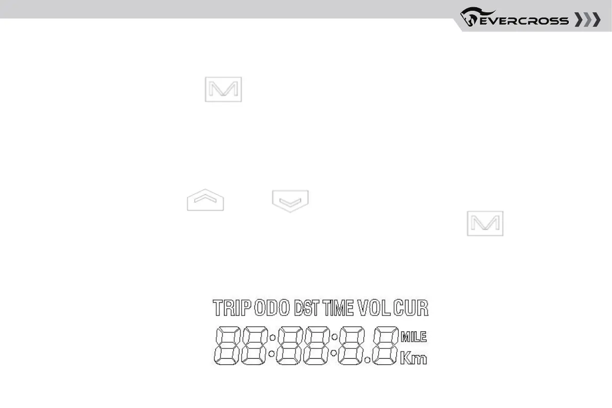 Premere brevemente il pulsante [ ], passare alla modalità, visualizzare in ordine: chilometraggio