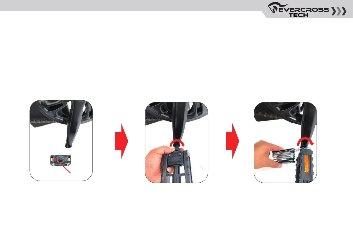 pedal en el sentido de las agujas del reloj y enrósquelo en la biela de la derecha; a continuación, utilice