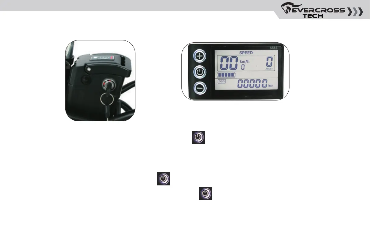 5.Start: For power-assisted riding, short press the button after turning on the machine to adjust the