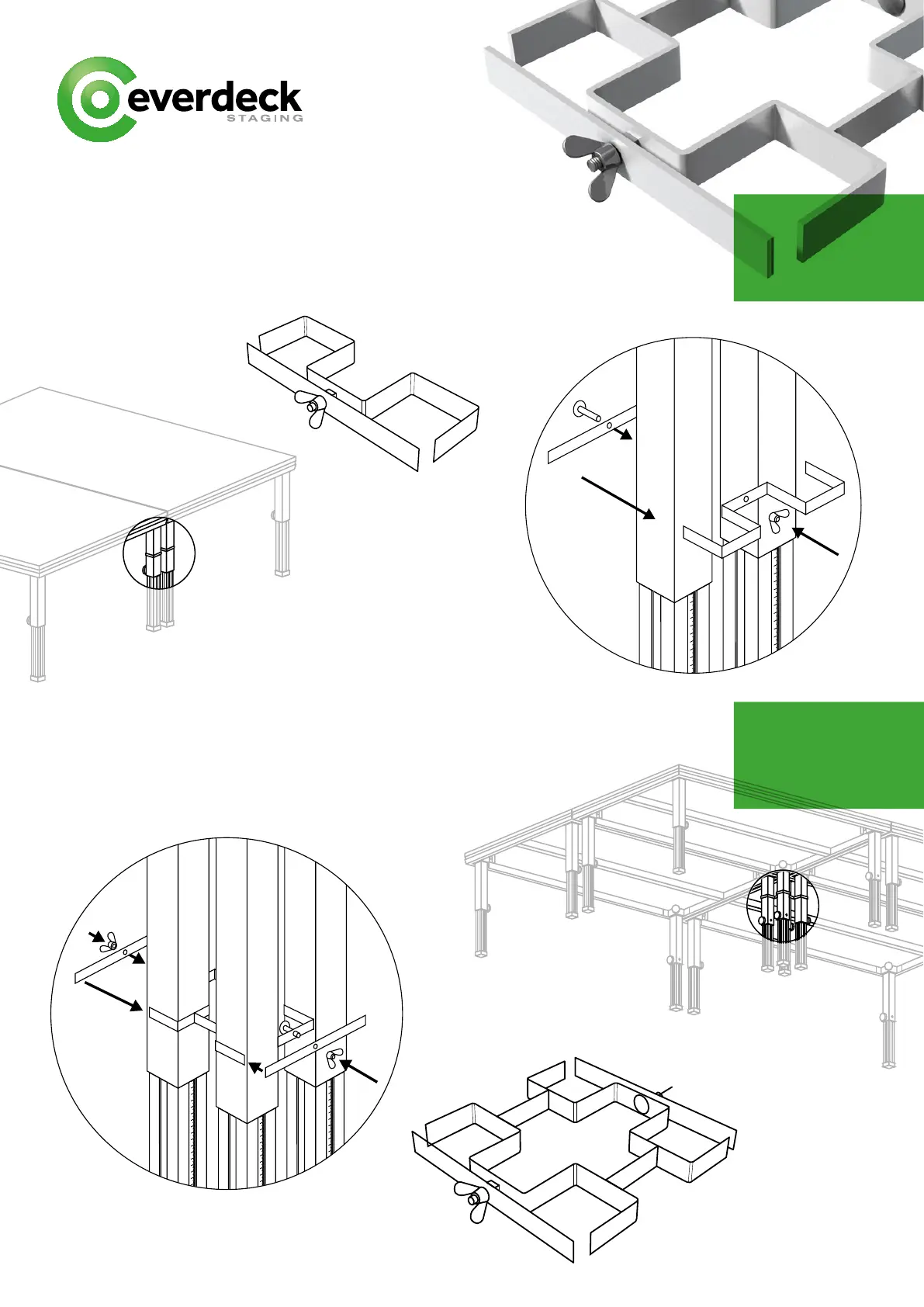 Everdeck Staging VERSA 750 DECK - Leg Clamping Methods; Single Leg Clamp Usage; Double Leg Clamp Usage
