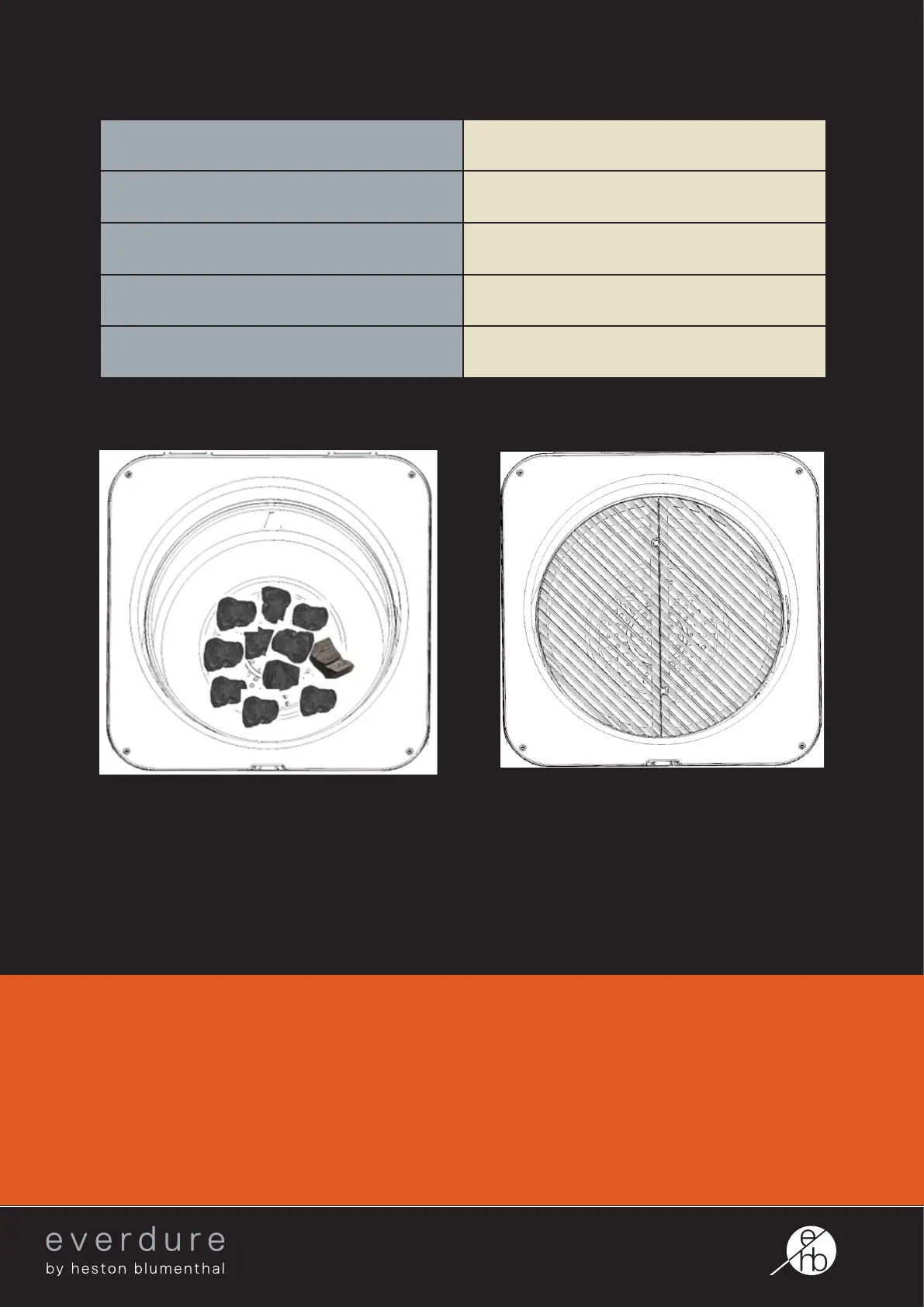 Charcoal conguration: Grilling surface conguration: