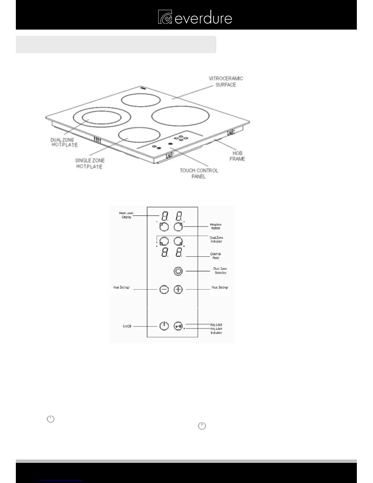 The cooktop appliance is operated by touching buttons, with the functions confirmed by LED displays and