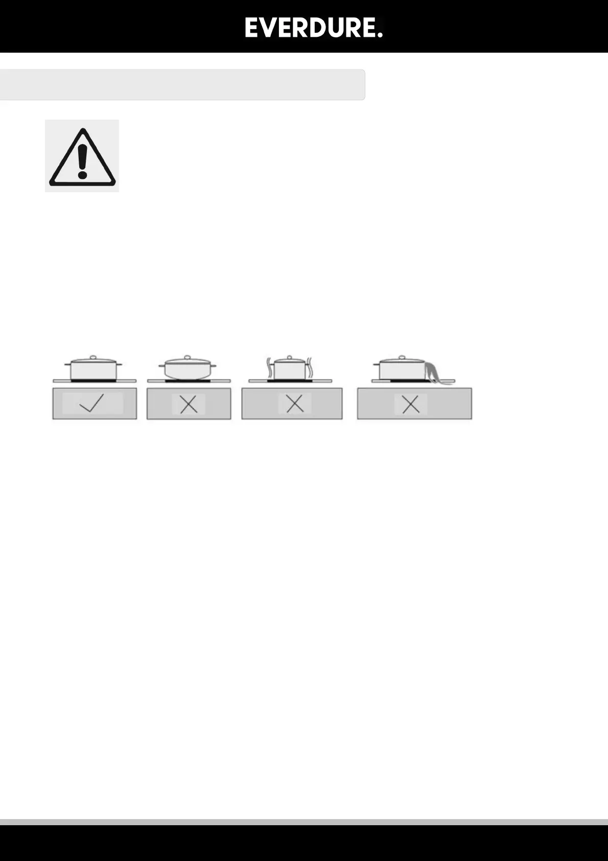 WARNING: Using cookware that is too large can cause discolouration or damage to the cooktop surface