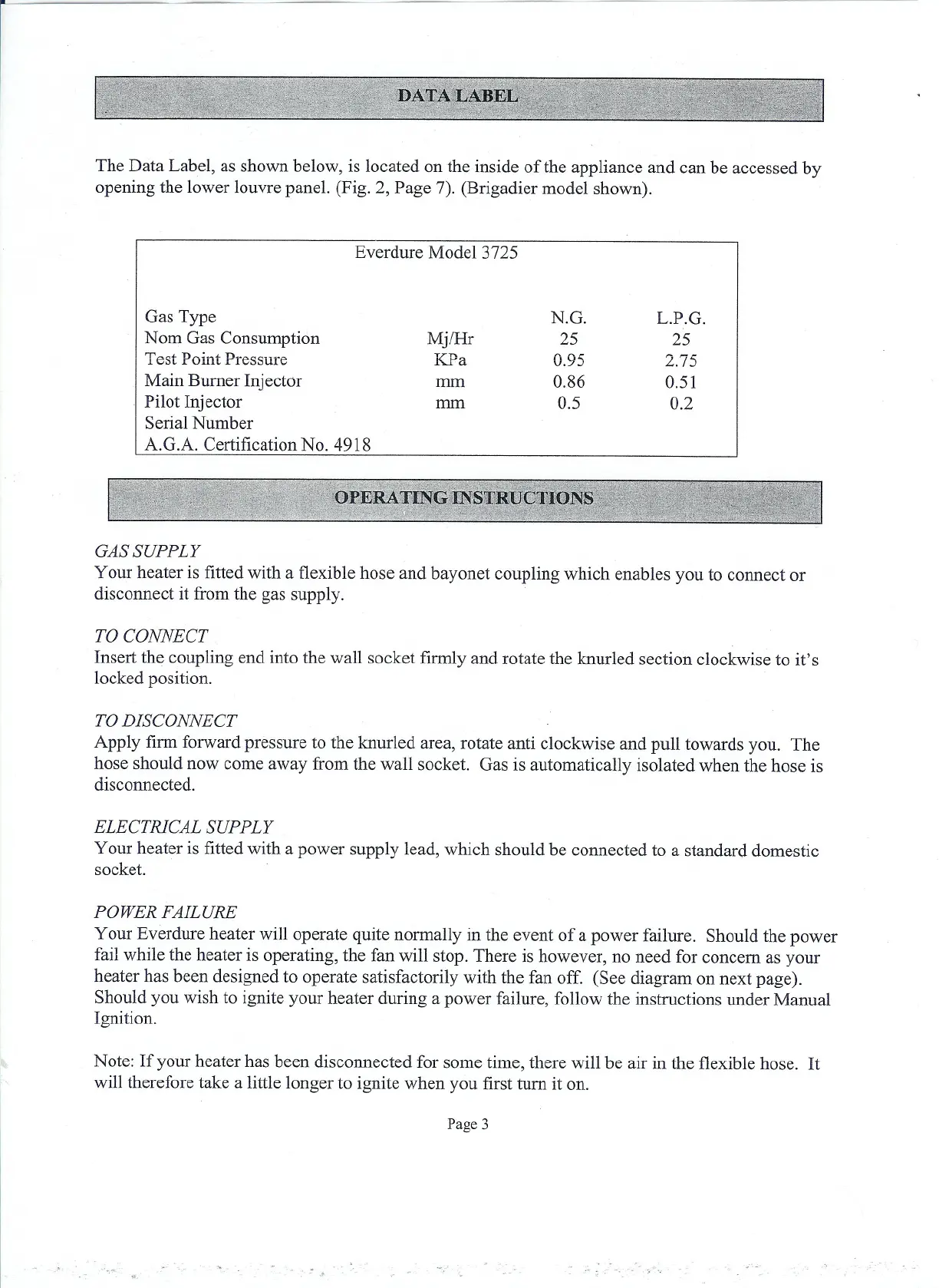 Should you wish to ignite your heater during a power failure, follow the instructions under Manual