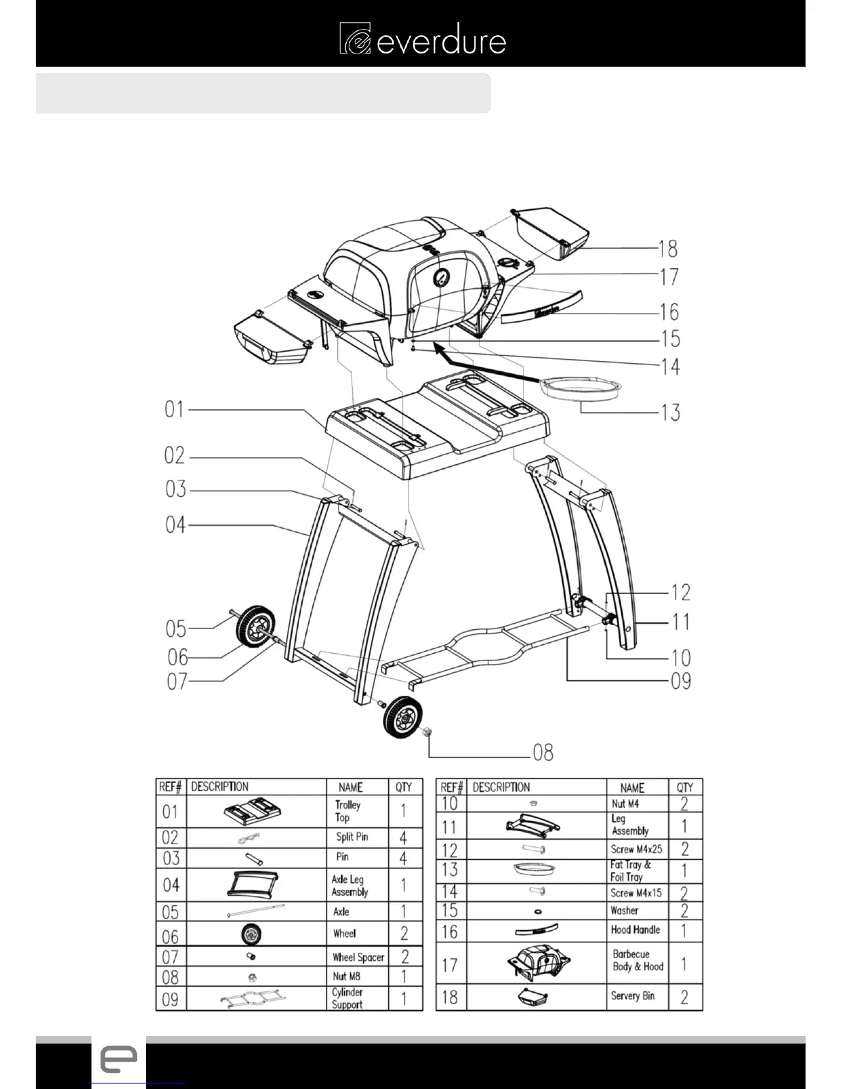 Everdure E2GO - Barbecue and Trolley Stand Assembly; Parts Identification