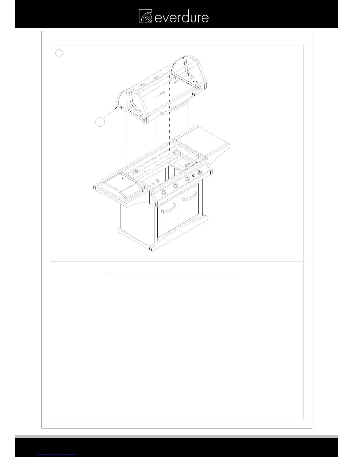 2. PLACE THE HOOD ASSEMBLY (PART 28) ON TOP OF THE BARBECUE SO THAT THE TABS IN THE REAR HOOD