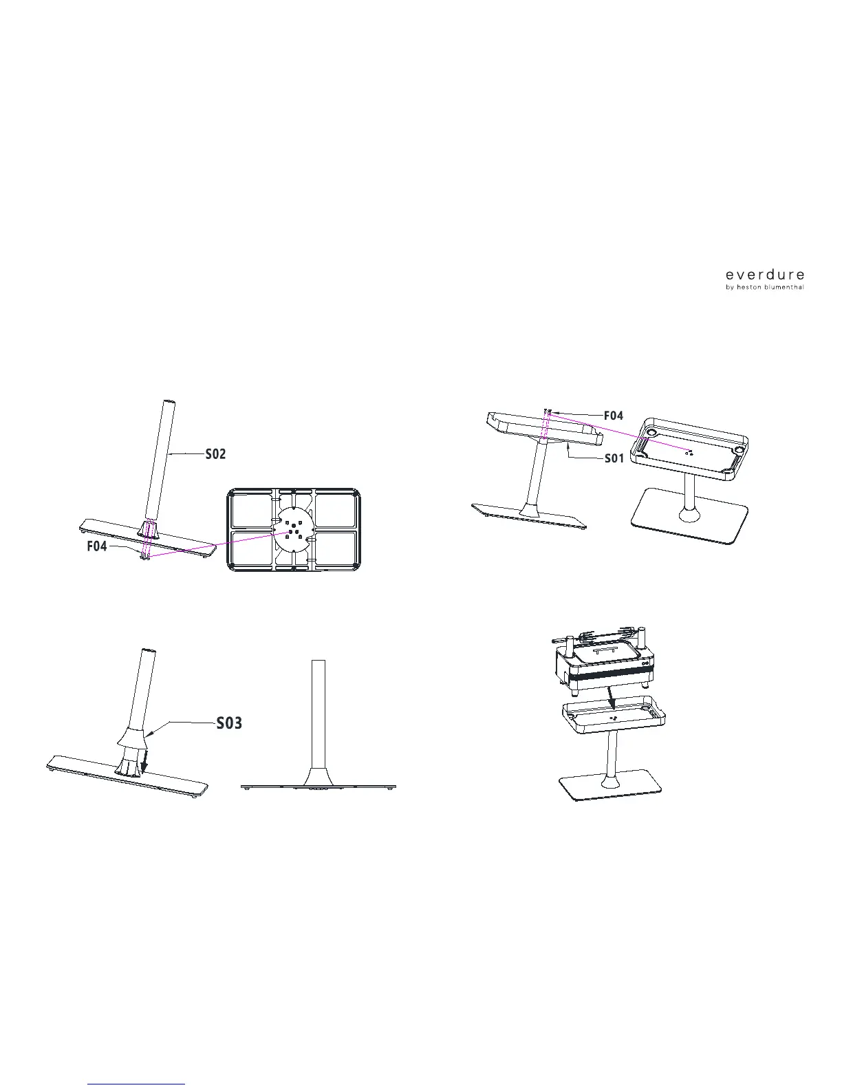 / Place the pedestal pole (S02) into the pole support. Align the three inner holes and x together