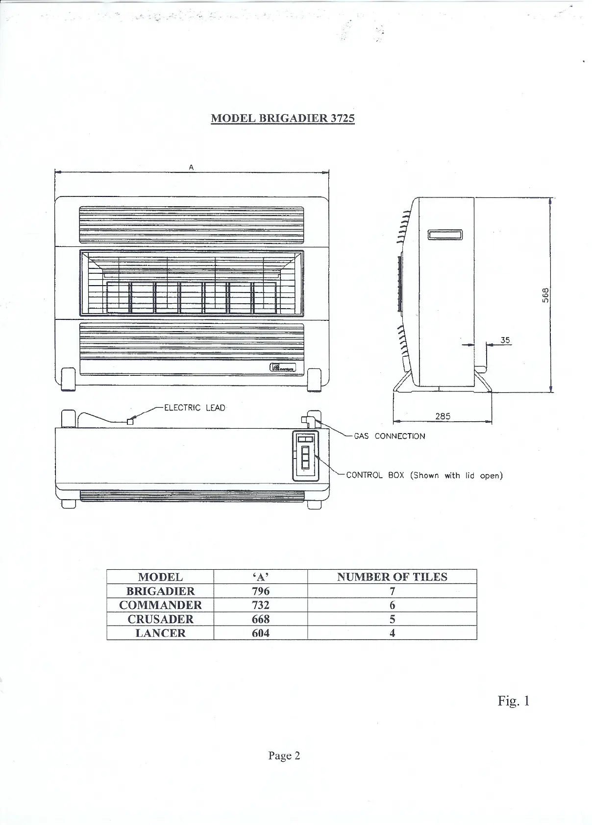 Everdure LANCER - Model Specifics and Operation; Brigadier 3725 Diagram and Dimensions; Model Series Comparison