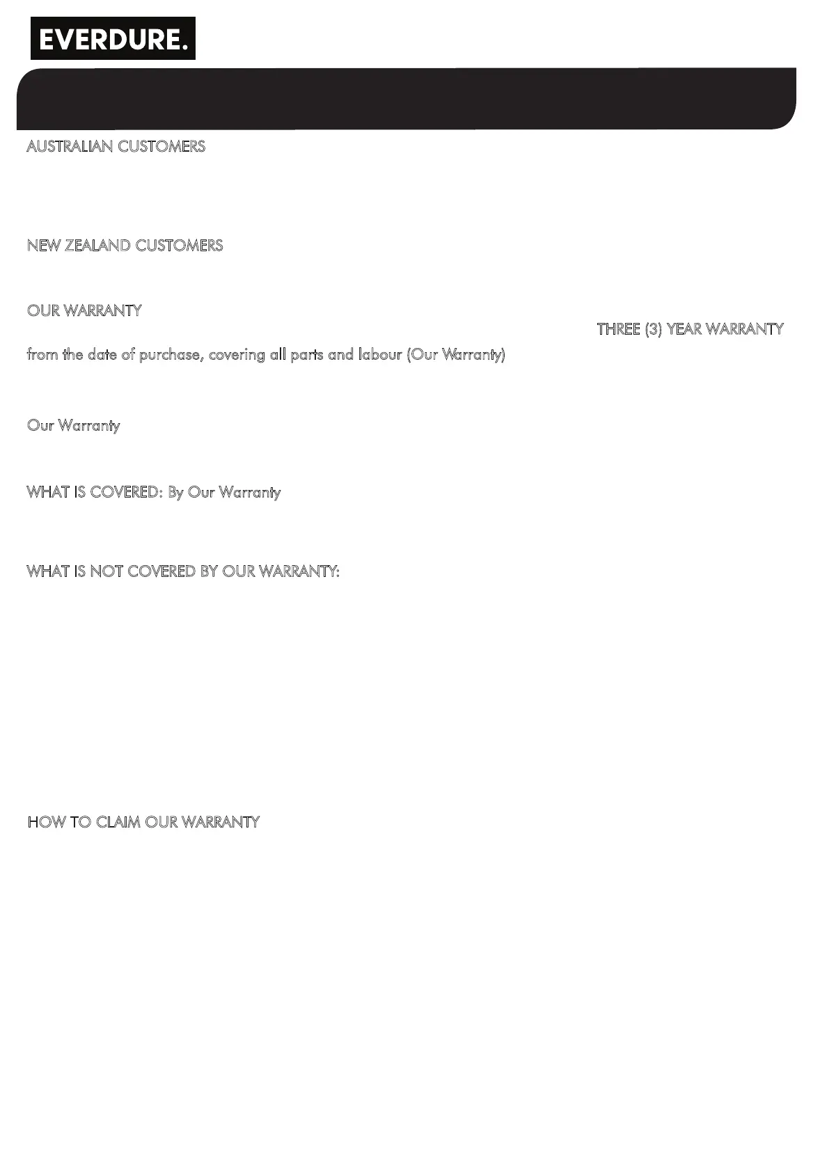 faulty workmanship. The product will be repaired or replaced at the option of Everdure. Our Warranty is subject to