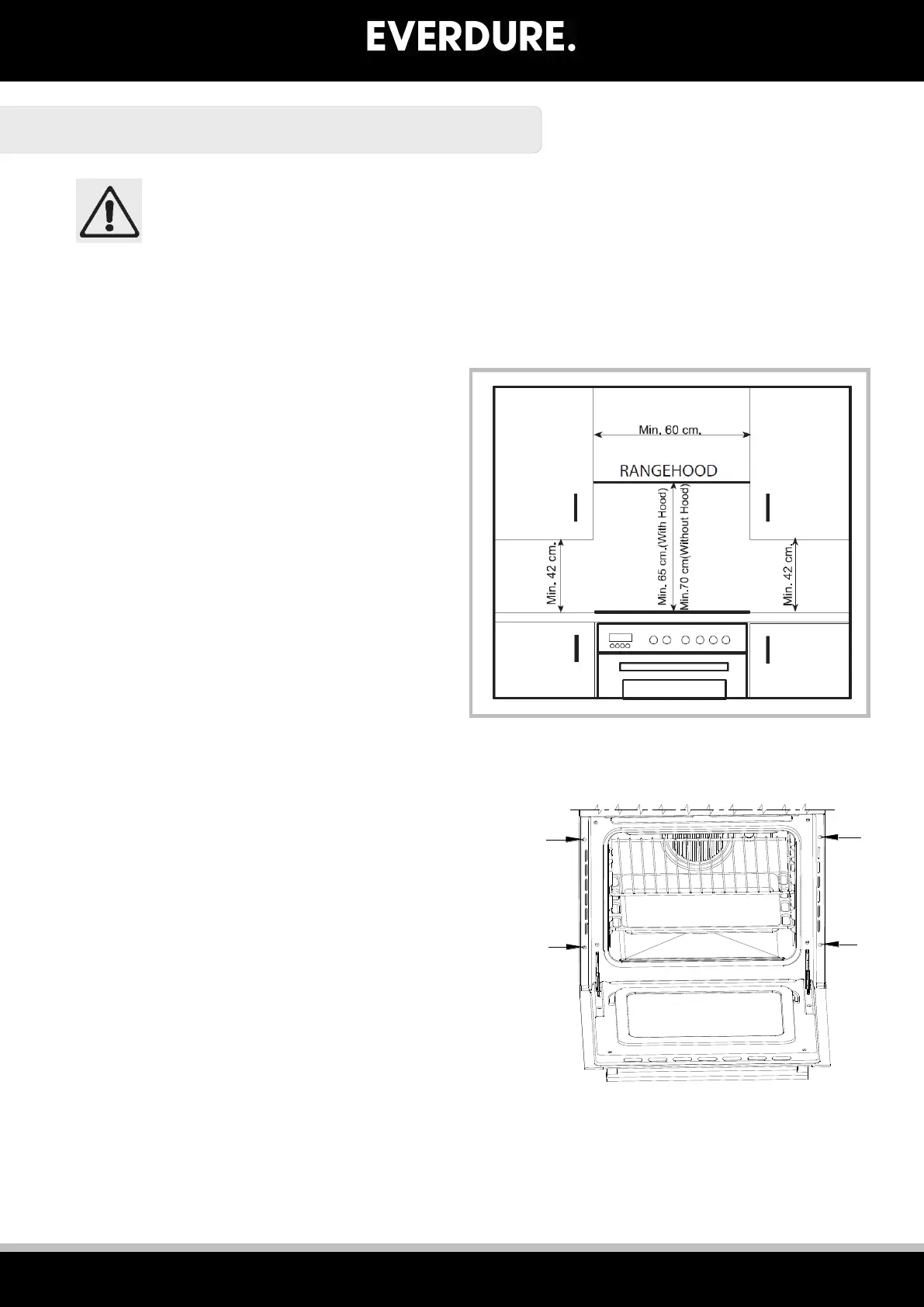 height of 65 cm from the cooktop. If there is no range