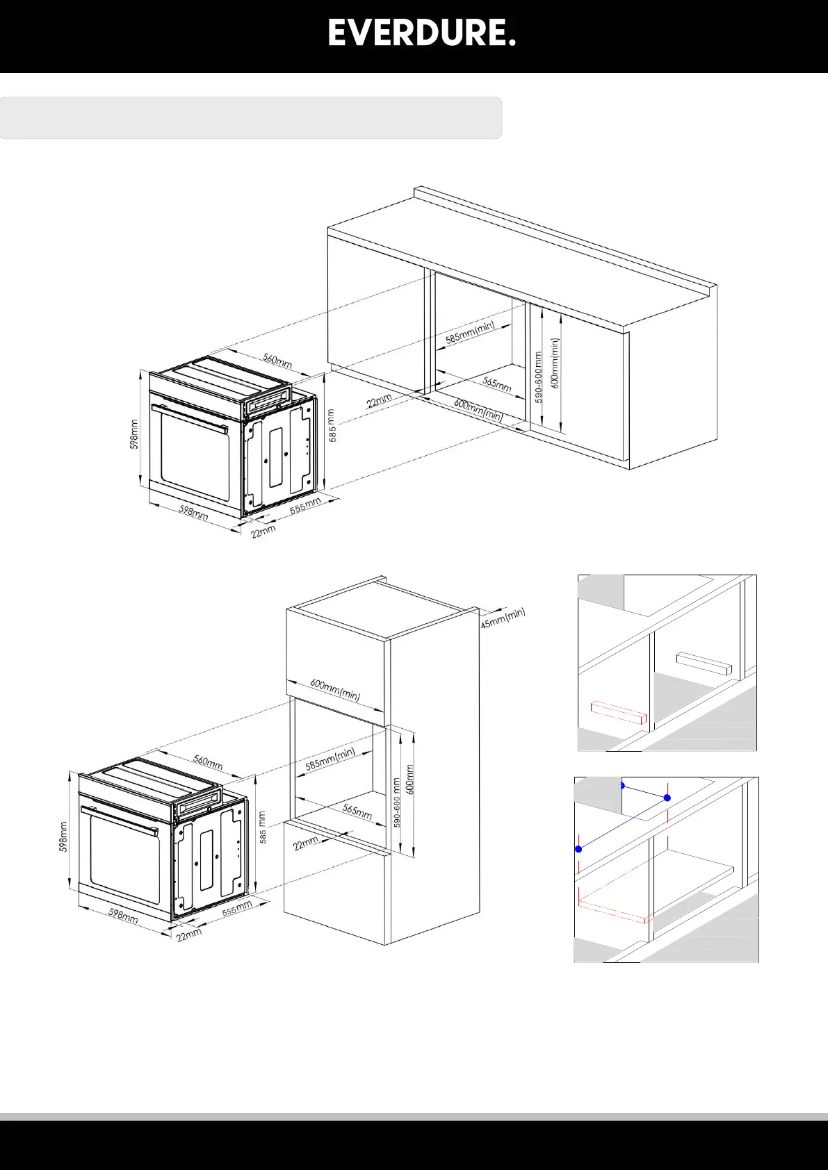 45x560mm behind the oven to allow the air to flow. Failure to follow this will result in damage to your appliance
