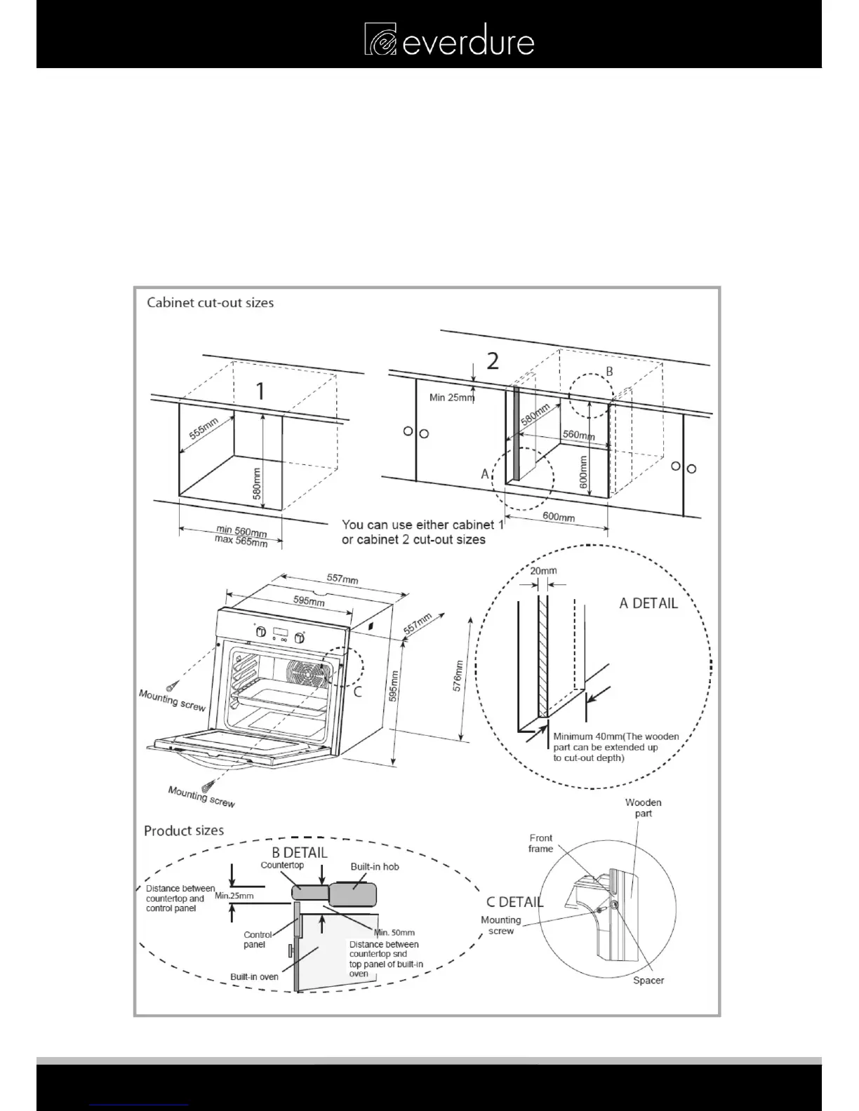 The dimensions and material of the cabinet in which the oven will be installed must be correct and resistant