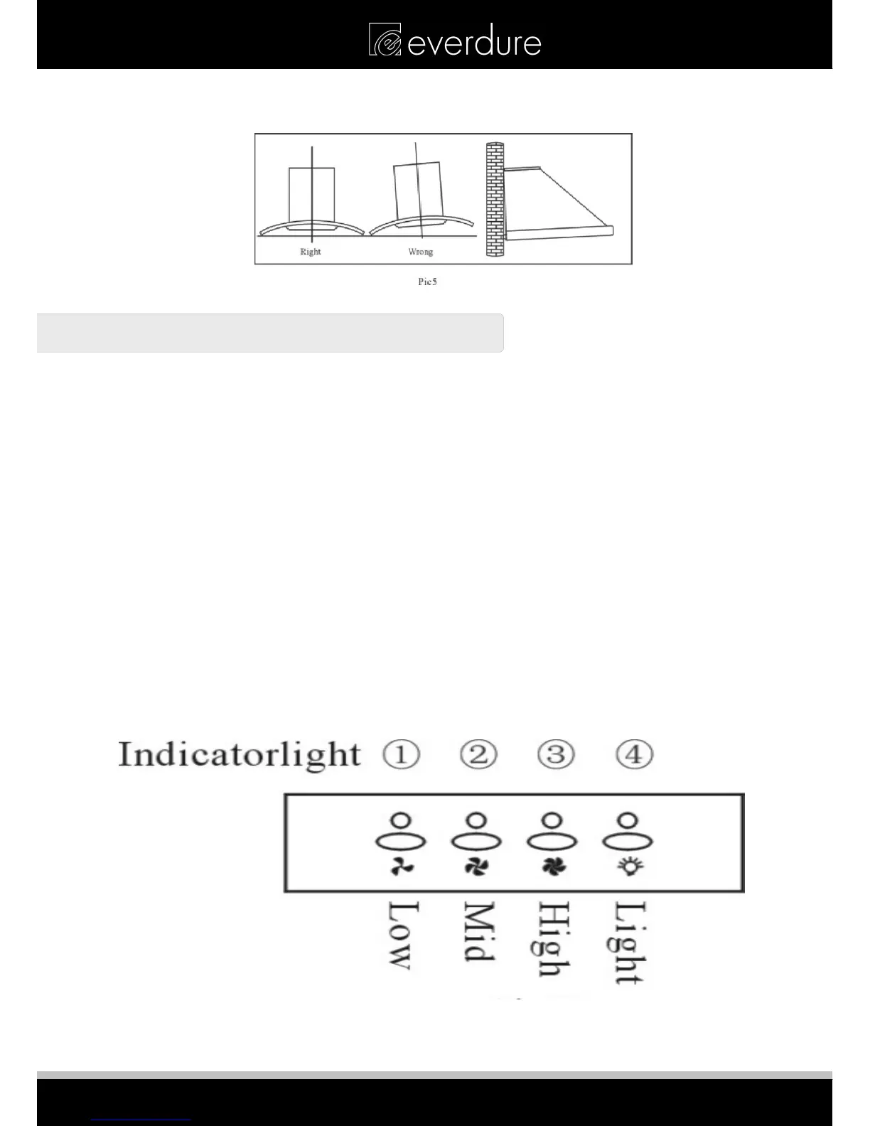 The range hood has indication diagrams to allow you to easily select the fan operating speed required.