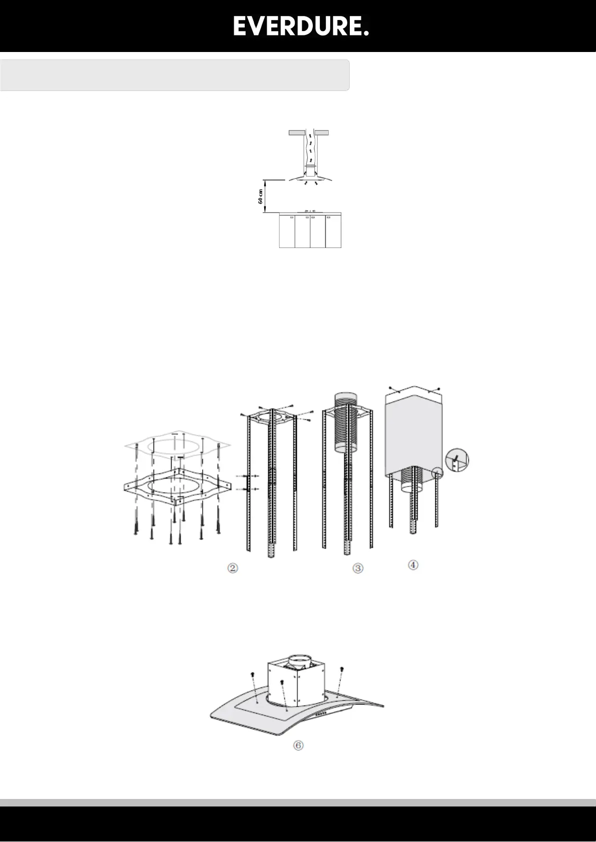 7. Affix the glass canopy to the rangehood body using the four glass screws (see image 6).