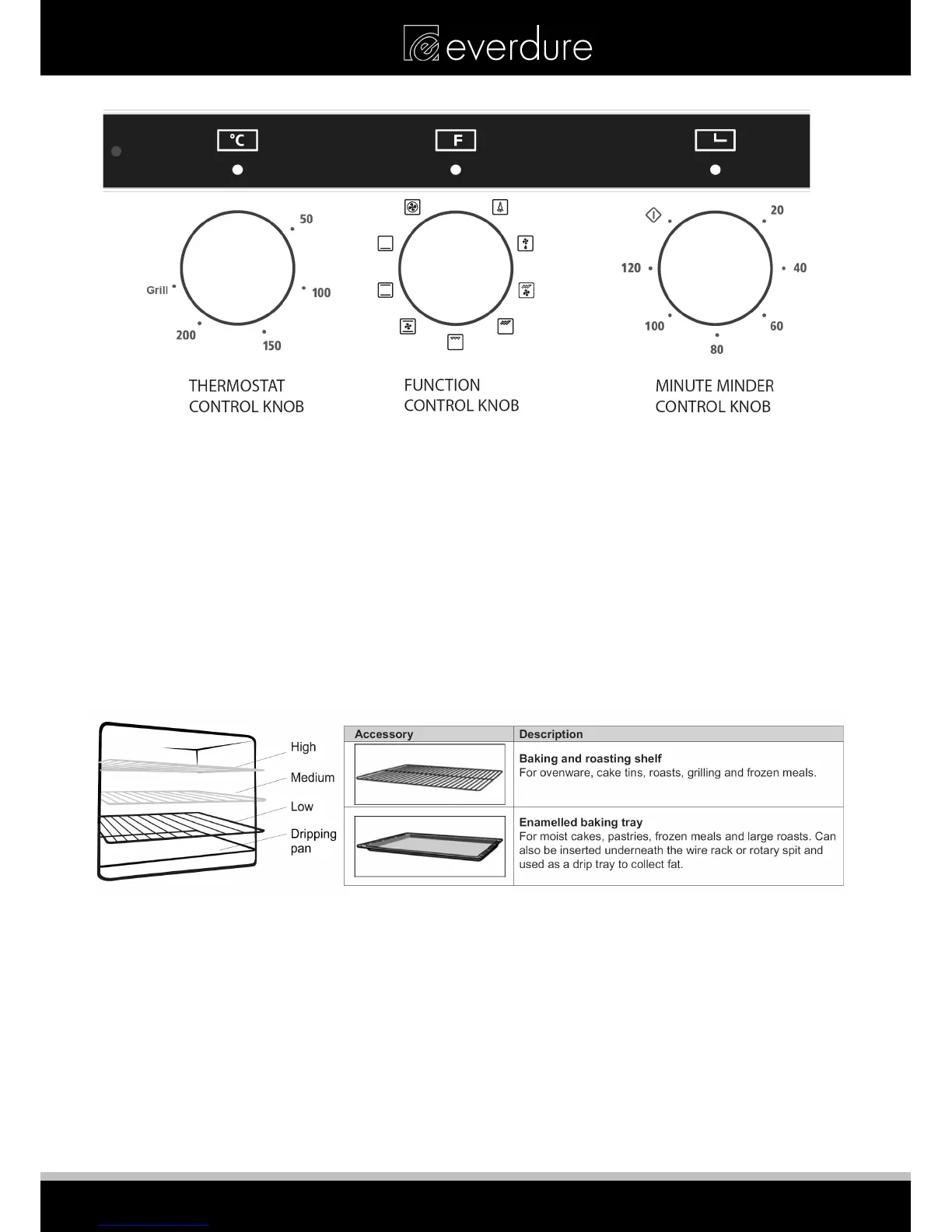 to >200⁰C (rotated fully clockwise to Grill), depending on the function. The control knob will not rotate past